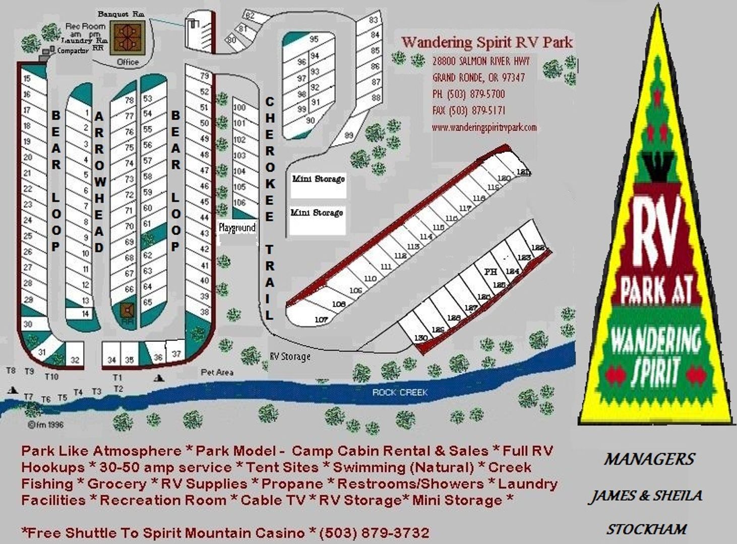 Wandering Spirit RV Park *Special* Hot Winter Special!! $100 off monthly rent RV must be in good clean condition and no tarps allowed. If the RV is 10 years or older, current pics must be provided when applying before entering the park. All rates are based on two-person occupancy. Monthly Rent: Now $500.00 - was $600(additional persons over 2 (over age 10) extra) Security Deposit: $125.00 Tenant pays electricity. Water, sewer, trash and cable included (box required) Maximum 2 vehicle Maximum 2 pets Pets must be friendly Application fee: $50.00 per adult If you would like to apply: 1. Visit our website- www.rentcpr.com 2. Click 'available now', 'rv/tiny homes' 3. Scroll down until you see the site you want to apply for 4. Click 'Apply Now' and it will lead you to our online application Each adult must apply all applications are completed online Pay deposit within 24 hours of approval Choose a move in date within 1 month upon approval (on move in ready sites) If more Questions Call or Text 971-283-8167